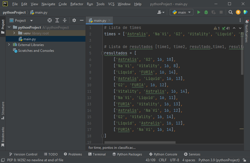 times = ['Astralis', 'Na`Vi', 'G2', 'Vitality', 'Liquid', 'FURIA']